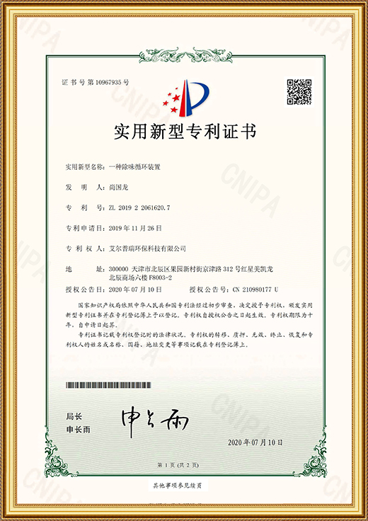 • 實用新型專利證書(一種空氣凈化產品生產裝置